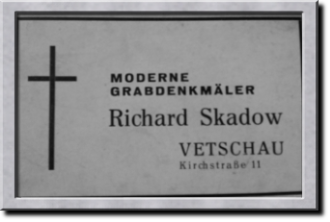 Richard Skadow war der Begründer des Steinmetzbetriebes. 1921 eröffnete er in Vetschau Werkstätten für moderne Friedhofskunst. Sohn Gerhard übernahm 1957 eine Werkstatt in Calau. Einfühlungsvermögen und Kundenfreundlichkeit bildeten die Voraussetzung zum Betreiben eines solchen Betriebes. DDR-